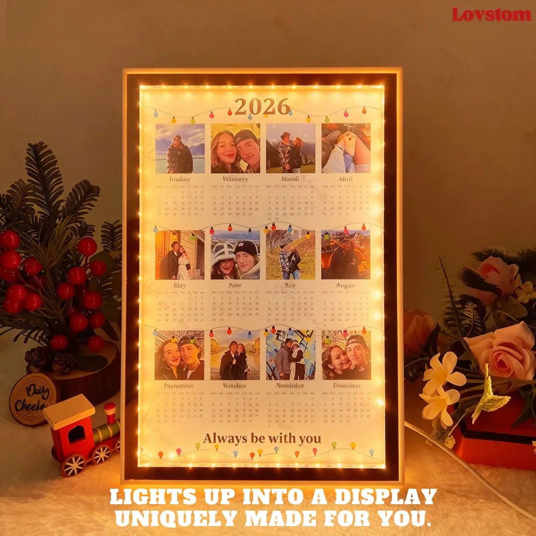 Simply upload your photos, select your layout, and we create a personalized light box with your chosen images and the 2026 calendar.